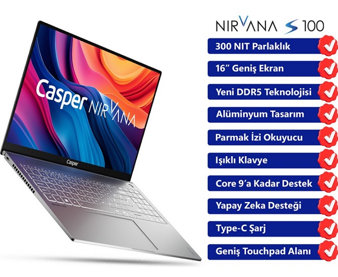 Casper Nirvana S100 Intel Core i7 13620H 16GB 1TB SSD Freedos 16" Taşınabilir Bilgisayar S100.1362-BF00X-G-F